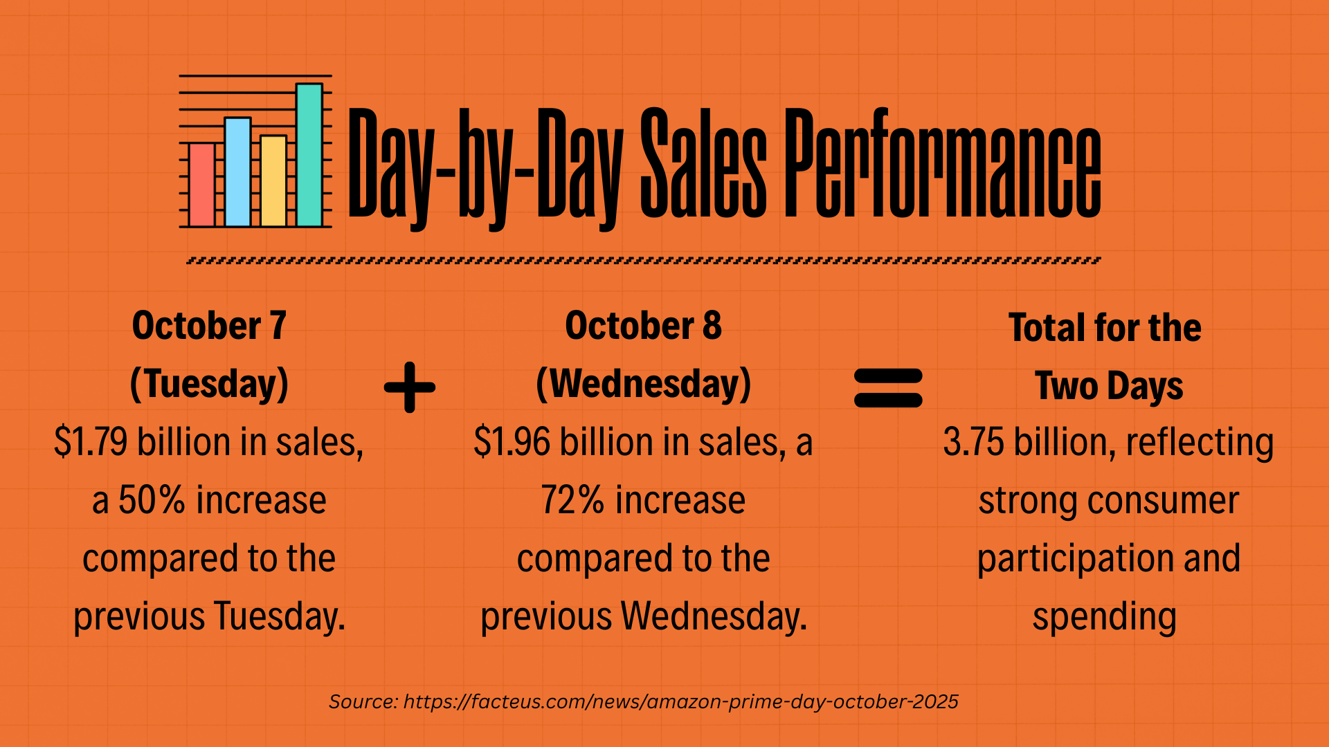 For this year’s event, forecasts predicted a 7% year-over-year increase in GMV, marking it as the largest October Prime event so far. Consumers spent $3.75 billion during the two days, compared to $942 million from last year. The average order was $45.42, with 44% of orders under $20 and 90% under $100.