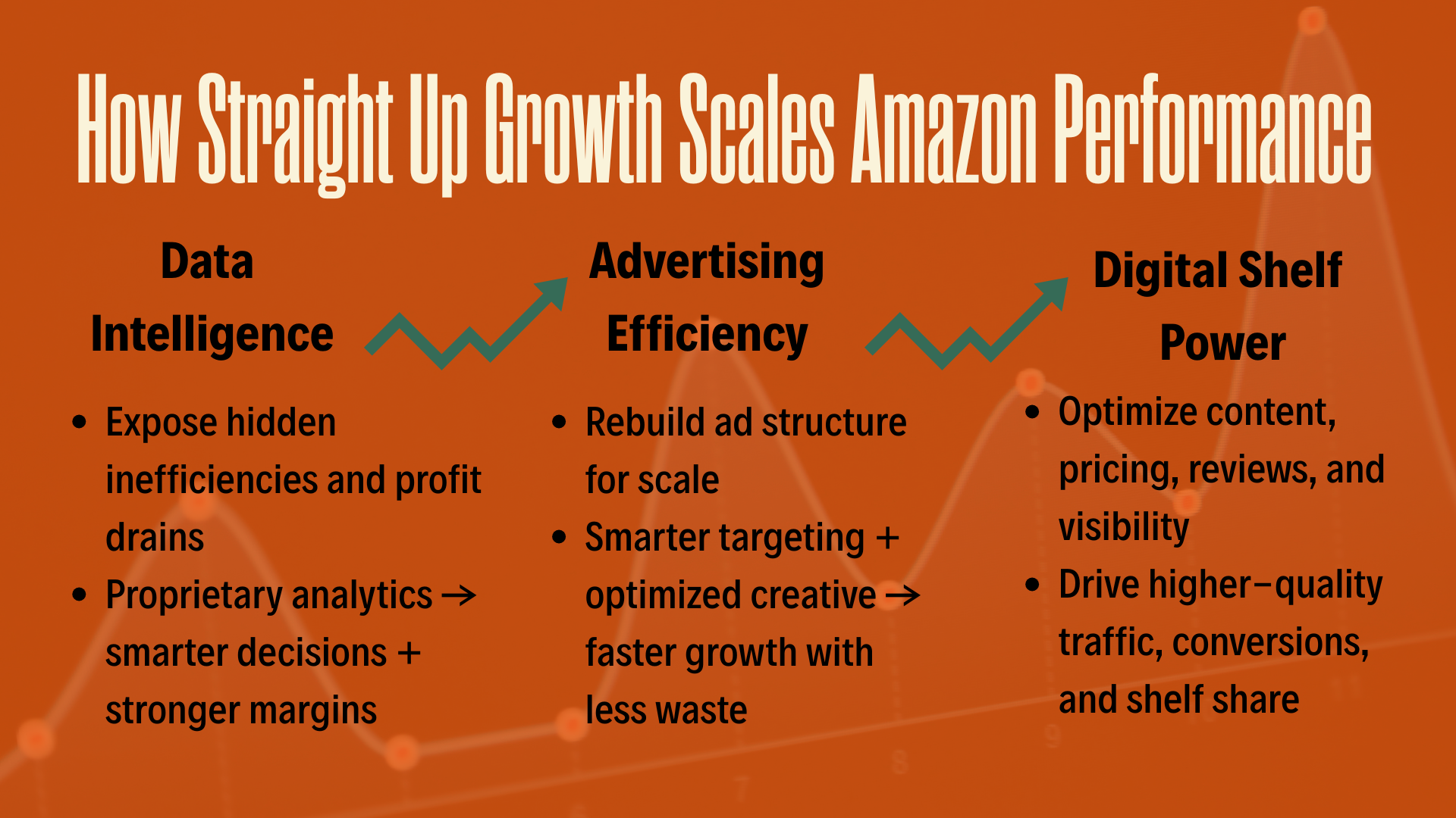 Even the best Amazon teams can’t do everything on their own. When strategy, bandwidth, and execution align, growth accelerates. Straight Up Growth partners with your team to: