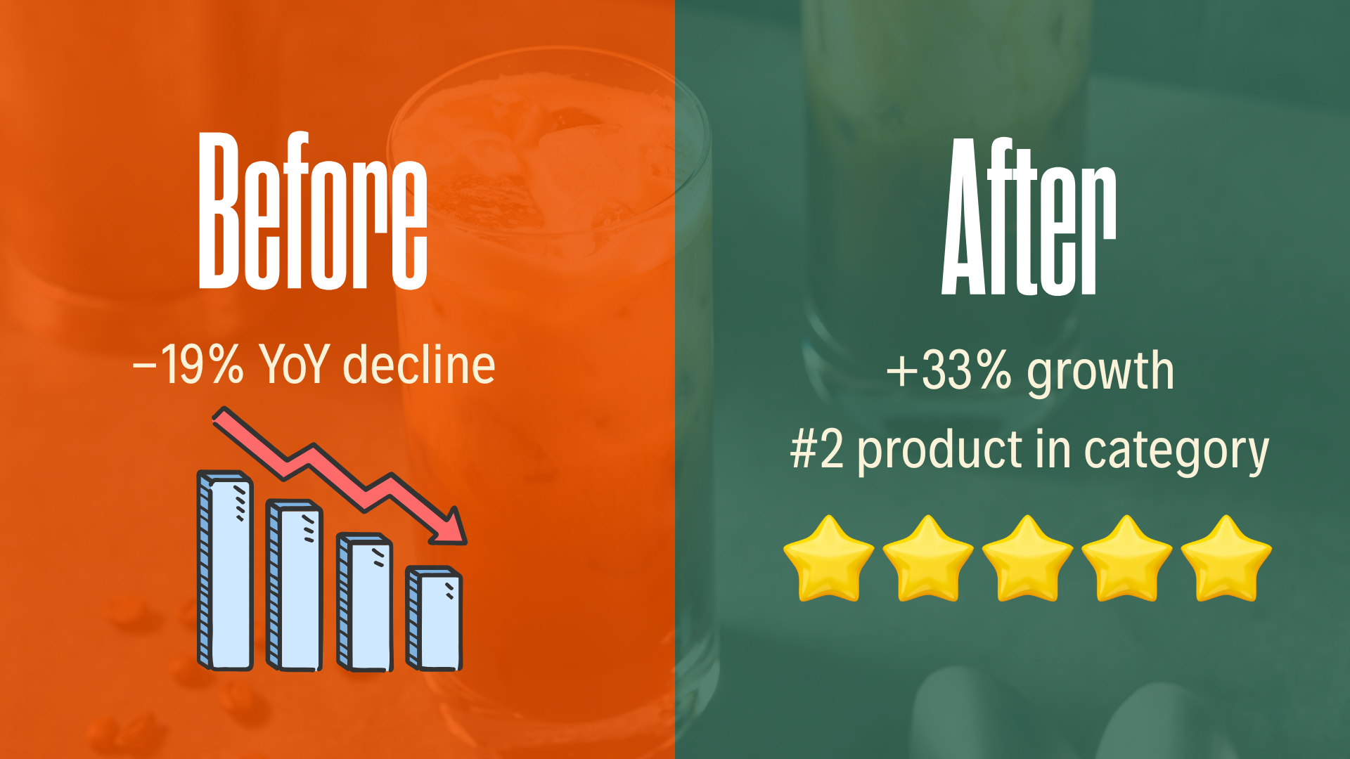 This approach reversed a -19% YoY decline to +33% growth, turning an underperformer into the #2 product in its category for the first time in a year.
